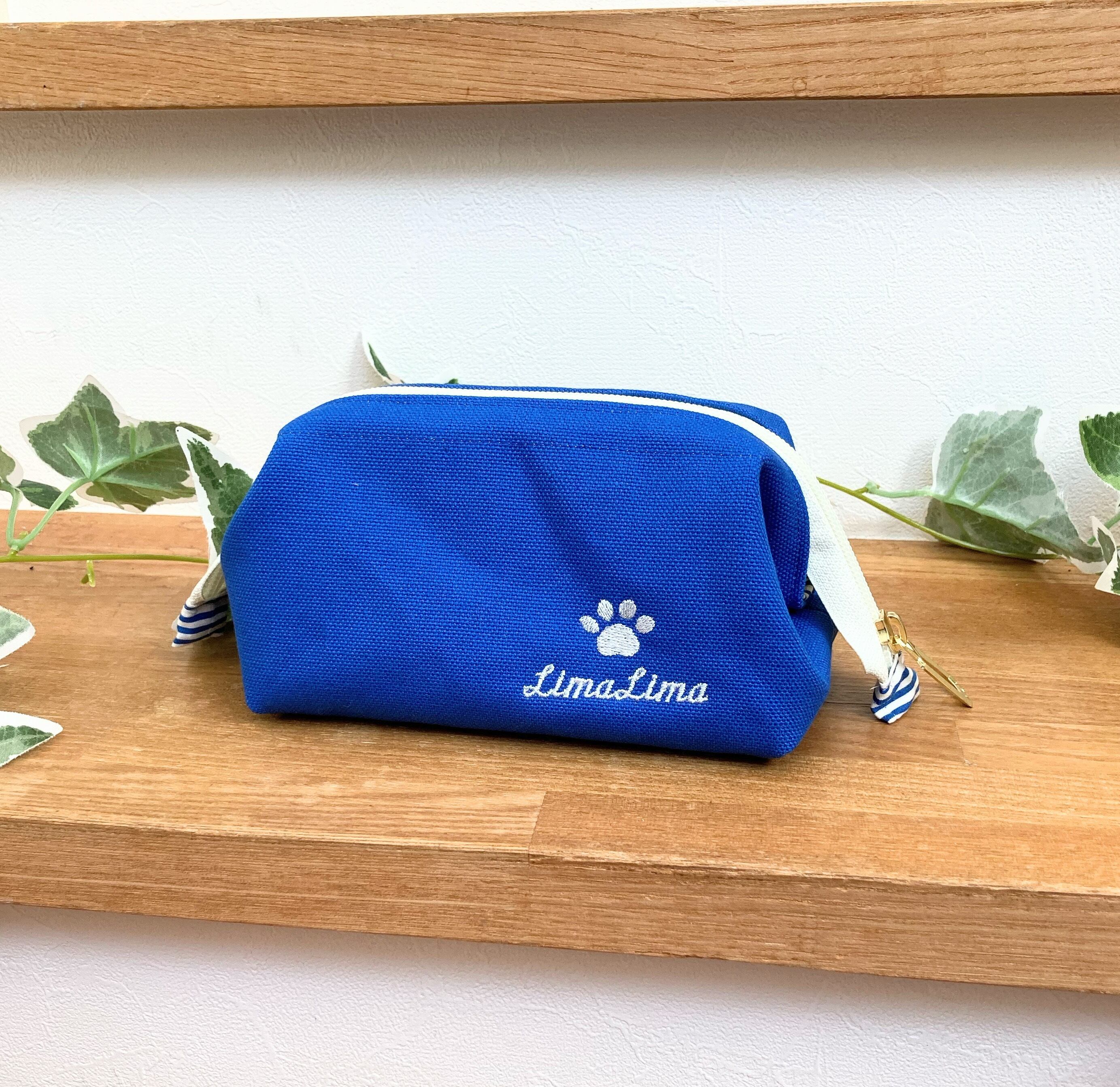ポーチ背面にはLimaLimaのロゴと肉球の刺繍を入れました。