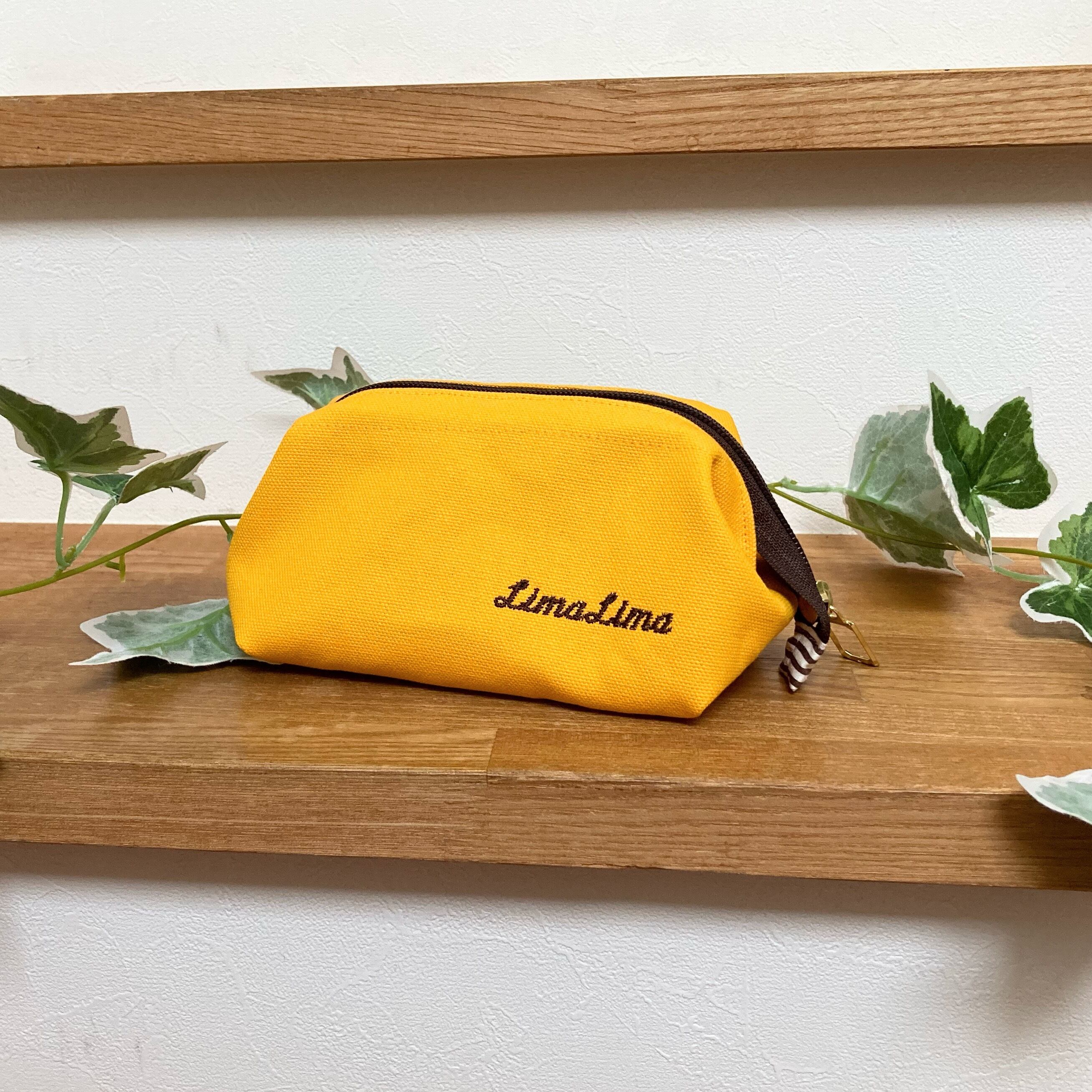 オリジナルデザインのミシン刺繍を施したワイヤーポーチです。
