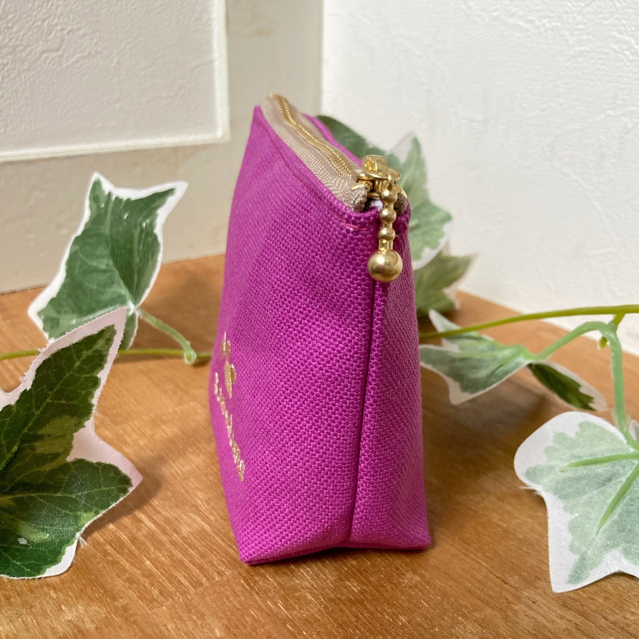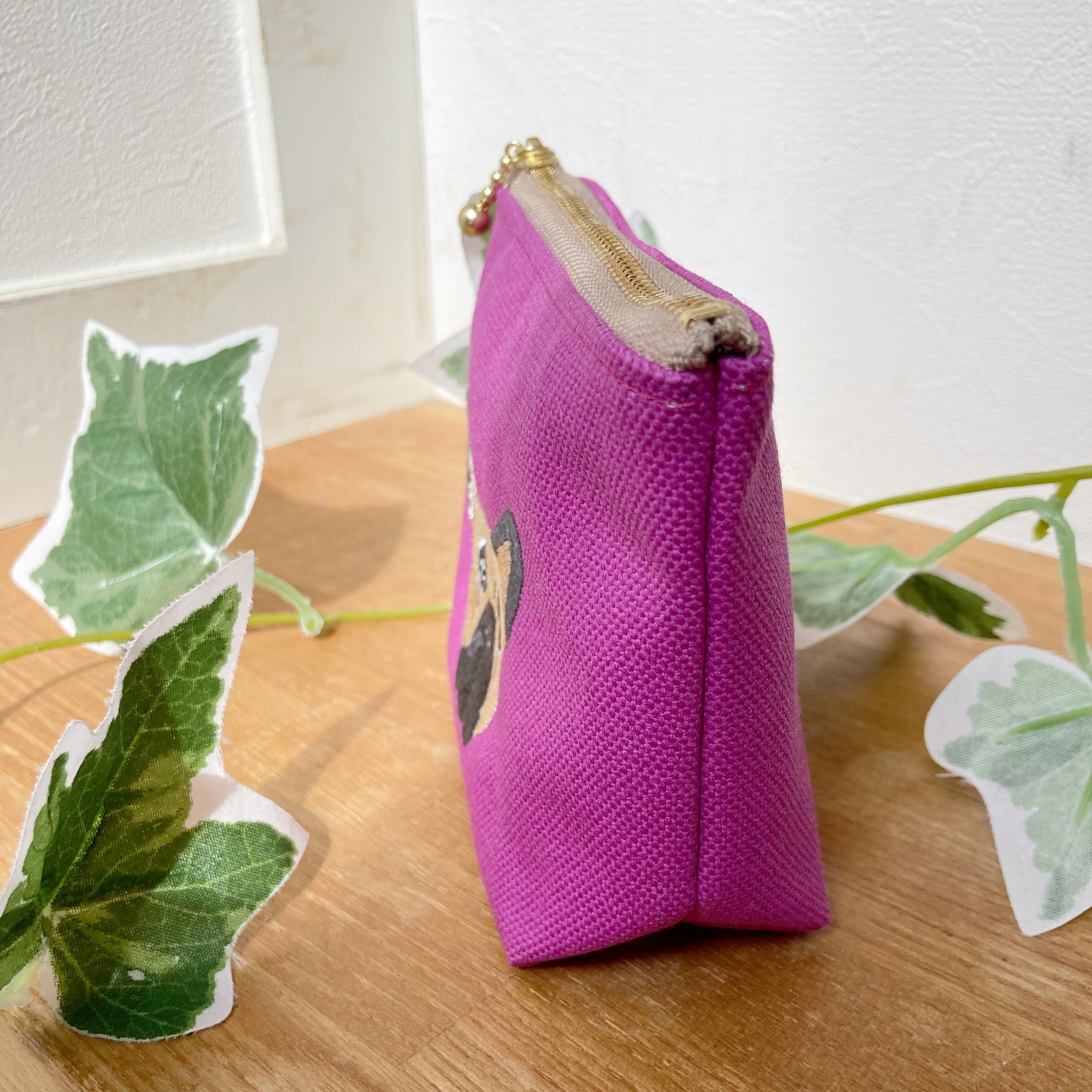 オリジナルデザインのミシン刺繍を施したミニファスナーポーチです。